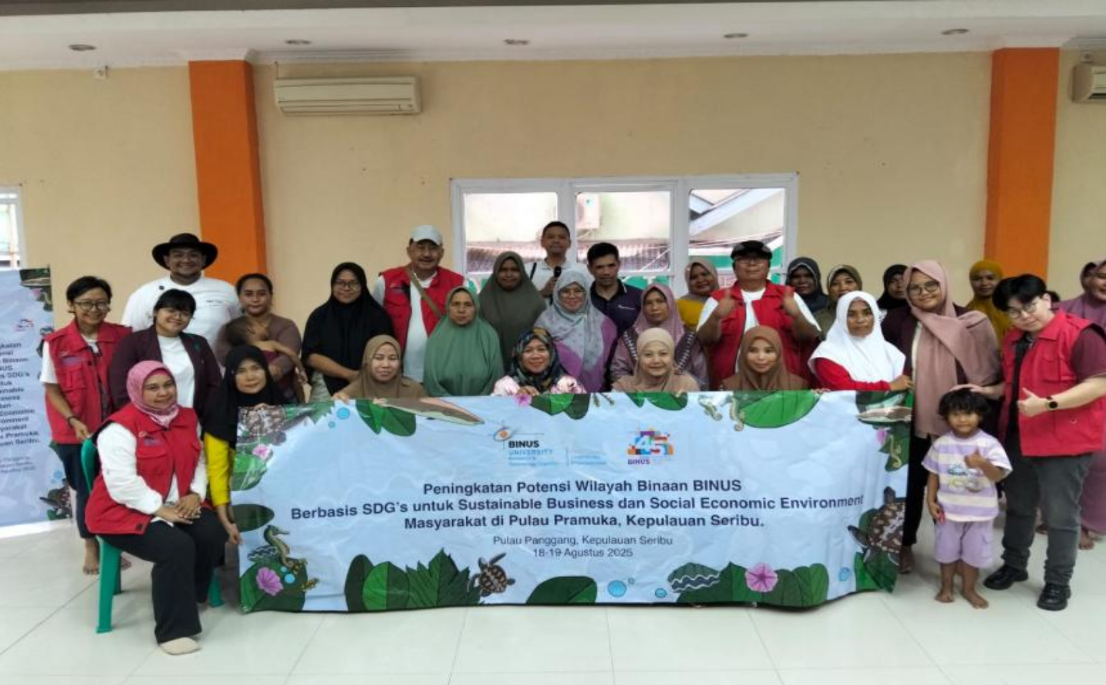 Di tengah birunya laut Kepulauan Seribu Utara, terhampar Pulau Panggang yang menjadi sebuah wilayah dengan potensi bahari yang melimpah terutama pada hasil olahan laut. Namun di balik keindahan itu, terdapat tantangan yang dihadapi para pelaku Usaha Mikro, Kecil, dan Menengah (UMKM) setempat dengan keterbatasan akses pasar dan minimnya literasi digital. Inilah narasi yang menggerakkan tim dosen dari BINUS University untuk hadir karena kami percaya bahwa pemberdayaan yang terarah dan berkelanjutan adalah kunci untuk mentransformasi keterbatasan menjadi kekuatan, sejalan dengan komitmen BINUS dalam mencetak insan yang peduli dan berkontribusi nyata bagi masyarakat. Melalui program pengabdian kepada masyarakat ini, kami ingin menyajikan ilmu dan harapan baru bagi kemandirian ekonomi masyarakat kepulauan.