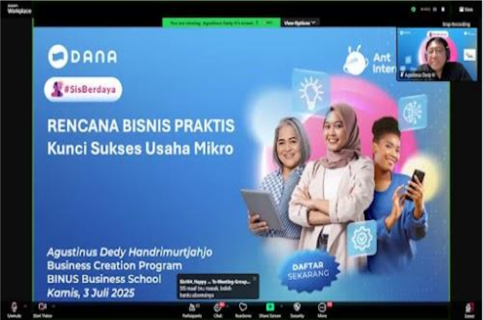 Di tengah dinamika perekonomian Indonesia, Usaha Mikro, Kecil, dan Menengah (UMKM) selalu menjadi pilar yang menopang harapan banyak keluarga. Namun, seringkali semangat dan produk unggulan para pelaku UMKM terbentur pada satu tantangan mendasar yaitu ketiadaan cetak biru yang jelas, atau Rencana Bisnis. Menyadari pentingnya hal ini, BINUS University melalui program Community Empowerment berkolaborasi dengan DANA Sisberdaya 2025, meluncurkan sebuah inisiatif yang mengubah tantangan menjadi peluang. Program Pengabdian kepada Masyarakat (PkM) yang bertajuk “Penyusunan Rencana Bisnis Untuk Pelaku UMKM di Indonesia” ini bukan sekadar pelatihan, melainkan jembatan untuk para pelaku usaha, khususnya anggota Komunitas Wanita UMKM Peserta Program Sisberdaya 2025 DANA, untuk mencapai pertumbuhan yang berkelanjutan. Inilah esensi dari komitmen BINUS untuk mendukung Decent Work and Economic Growth dan Gender Equality sehingga menghadirkan harapan baru bagi sektor usaha yang paling vital di negara kita.