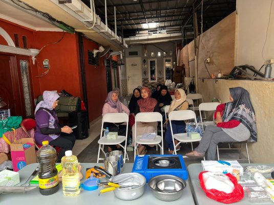 Kolaborasi ini kemudian diwujudkan melalui program PkM hibah internal BINUS University yang dipimpin oleh Ibu Titi Indahyani, S.Sn., M.M., Ph.D. dari Program Studi Desain Interior. Bersama komunitas warga, tim BINUS berdialog untuk memahami kebutuhan dan potensi lokal. Dari situ, mereka merancang pelatihan pengolahan minyak jelantah menjadi lilin dan sabun ramah lingkungan. Kegiatan yang dilaksanakan pada 3 Oktober 2025 itu menjadi ruang belajar bersama—tentang bagaimana hal sederhana di rumah bisa diubah menjadi sesuatu yang bermanfaat.