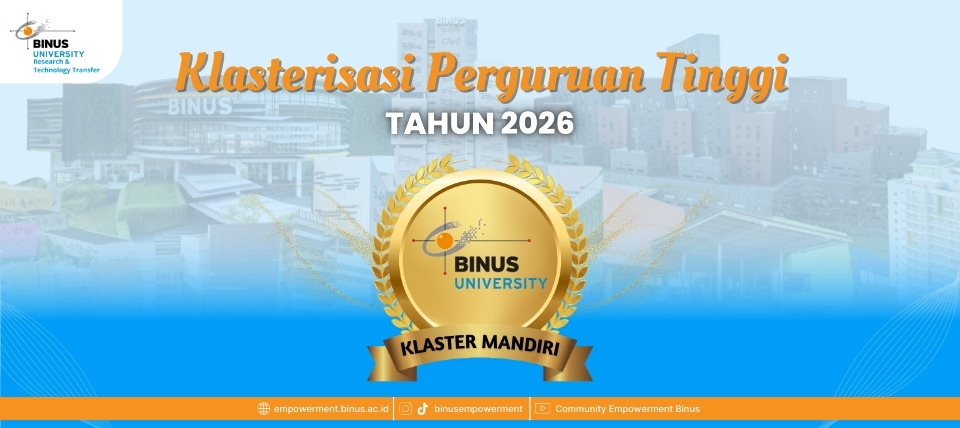 BINUS University kembali meraih pencapaian penting dalam bidang riset dan pengabdian kepada masyarakat. Berdasarkan Keputusan Direktur Penelitian dan Pengabdian kepada Masyarakat KEMDIKTISAINTEK No. 0968/C3/DT.05.00/2025, BINUS ditetapkan sebagai Klaster Perguruan Tinggi Mandiri untuk tahun 2026.