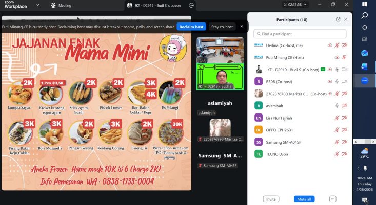 Kesadaran inilah yang kemudian mendorong hadirnya kolaborasi antara akademisi dan pelaku usaha. Pada 26 Februari 2026, melalui Community Empowerment BINUS University, para dosen dari bidang Desain Komunikasi Visual yaitu Budi Sriherlambang, S.Sn., M. in Imagineering., dan Dewi Kumoratih, S.Sn., M.Si. mendampingi para pelaku UMKM di Kelurahan Sukabumi Utara dalam sesi review dan pengembangan identitas visual usaha. Kegiatan ini dirancang fleksibel melalui pertemuan onsite dan online agar para pelaku usaha tetap dapat mengikuti sesi sambil menjalankan aktivitas produksi mereka. Dalam suasana diskusi yang terbuka, peserta membawa logo yang sudah dimiliki maupun ide desain yang masih sederhana. Bersama para dosen, mereka mengevaluasi pilihan warna, bentuk, serta konsep visual agar identitas brand dapat lebih mewakili karakter produk dan lebih menarik bagi calon pelanggan.