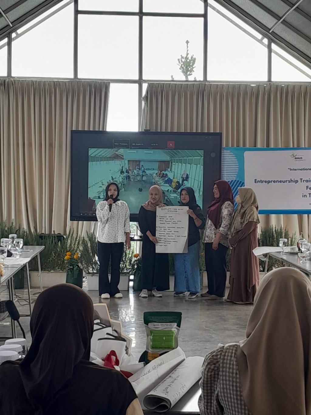 Sebanyak 20 pelaku UMKM perempuan dari sektor kuliner, herbal, hingga kerajinan tangan, mengikuti pelatihan ini dengan penuh semangat. Didampingi oleh para akademisi dari BINUS Business School—Dr. Artamoro Sundjaja, Dr. Sekar Prasetyaningtyas, dan Chairani Putri Pratiwi, M.Sc—para peserta diajak untuk mengeksplorasi kembali potensi lokal yang mereka miliki. Pelatihan ini tidak hanya berisi teori, namun juga praktik langsung, diskusi kelompok, hingga simulasi penyusunan strategi branding.