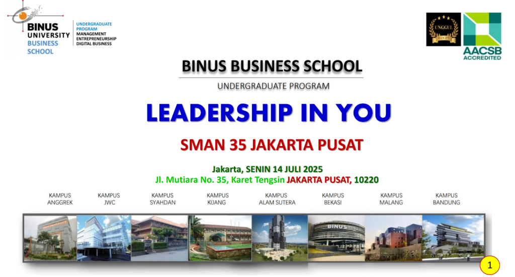 Sosok inspiratif di balik gerakan ini adalah Dr. Ir. Haryadi Sarjono, ST, MM, ME, yang bertindak sebagai salah satu Tim Pengusul dari Program Studi Manajemen, Universitas Bina Nusantara yang berkolaborasi dengan satu salah mahasiswa jurusan Marketing Communication, 2540133556 – Angelica Belinda yang bergerak untuk memberikan pelatihan berharga di SMA Negeri 35 Jakarta Pusat, merupakan sebuah sekolah yang siswanya menghadapi tantangan minimnya pengalaman kerja dan terbatasnya informasi mengenai dunia profesional, dilaksanakan pada 14 Juli 2025 yang memiliki tujuan utama bukan hanya sekadar transfer ilmu, tetapi untuk menyentuh aspek psikologis untuk mengurangi kecemasan, menghilangkan keraguan, dan meningkatkan kepercayaan diri siswa dalam merancang masa depan.