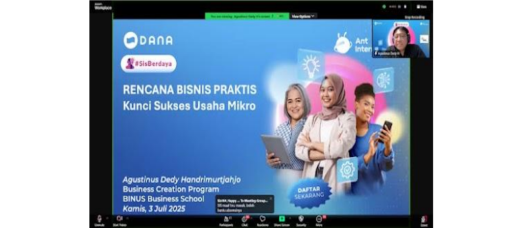 Di tengah dinamika perekonomian Indonesia, Usaha Mikro, Kecil, dan Menengah (UMKM) selalu menjadi pilar yang menopang harapan banyak keluarga. Namun, seringkali semangat dan produk unggulan para pelaku UMKM terbentur pada satu tantangan mendasar yaitu ketiadaan cetak biru yang jelas, atau Rencana Bisnis. Menyadari pentingnya hal ini, BINUS University melalui program Community Empowerment berkolaborasi dengan DANA Sisberdaya 2025, meluncurkan sebuah inisiatif yang mengubah tantangan menjadi peluang. Program Pengabdian kepada Masyarakat (PkM) yang bertajuk “Penyusunan Rencana Bisnis Untuk Pelaku UMKM di Indonesia” ini bukan sekadar pelatihan, melainkan jembatan untuk para pelaku usaha, khususnya anggota Komunitas Wanita UMKM Peserta Program Sisberdaya 2025 DANA, untuk mencapai pertumbuhan yang berkelanjutan. Inilah esensi dari komitmen BINUS untuk mendukung Decent Work and Economic Growth dan Gender Equality sehingga menghadirkan harapan baru bagi sektor usaha yang paling vital di negara kita.